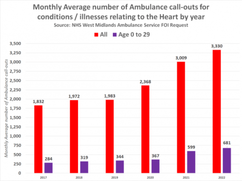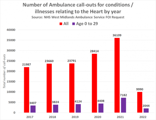 Dne 25. aprila 2022 je Duncan Husband poslal zahtevo za svobodo informacij (FOI) West Midlands Ambulance Service University NHS Foundation Trust, da bi izvedel število klicev za bolnike s srčnimi boleznimi na leto, med 1. januarjem 2017 in današnji dan.
