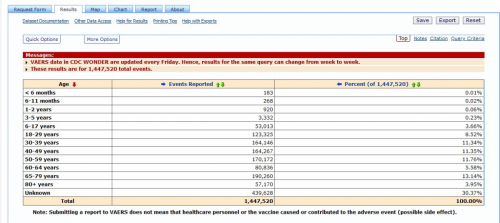 Vsak petek VAERS objavi poročila o poškodbah zaradi cepiv, ki jih prejme na določen datum. Poročila, predložena VAERS, zahtevajo nadaljnjo preiskavo, preden se lahko potrdi vzročna povezava. V preteklosti se je pokazalo, da VAERS poroča le o 1 % dejanskih neželenih učinkov cepiva.