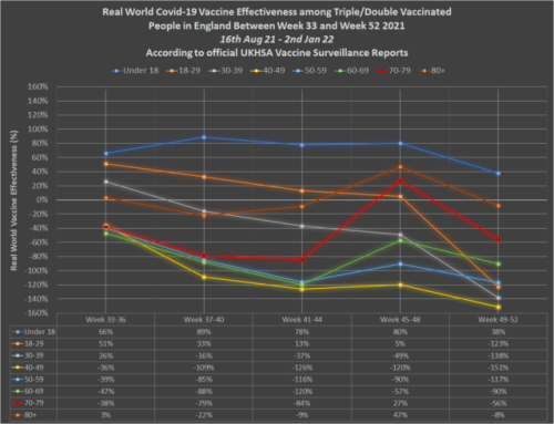 Podatki, ki jih je objavila UKHSA, potrjujejo, da dejanska učinkovitost injekcij Covid-19 (dejansko merilo delovanja imunskega sistema) v kratkem času močno upade.