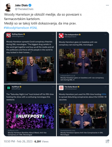 Zerohedge.com poroča: Harrelson je na vprašanje, kaj je "absurdno pri protokolih COVID", odgovoril: "Dejstvo, da se še vedno izvajajo!"