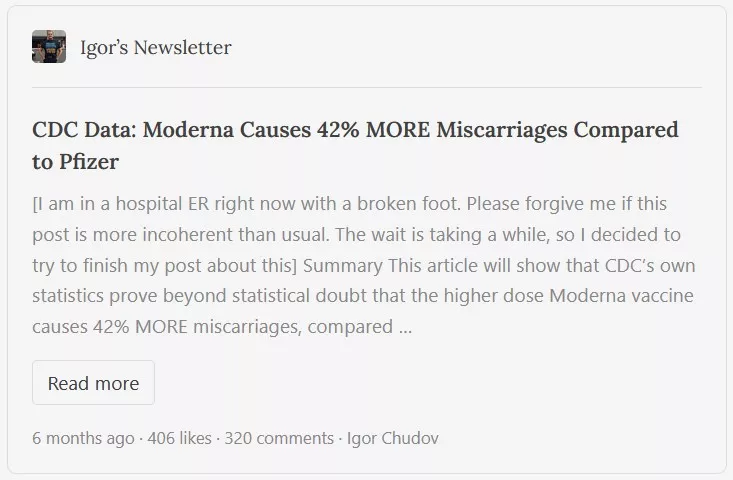 Na nek način so matere, ki so prejele Pfizerjevo cepivo, srečnice. Pri ženskah, ki so prejele cepivo Moderna, je bilo za 42 % večja verjetnost spontanega splava in 93 % večja verjetnost, da bo njihov dojenček umrl po rojstvu.