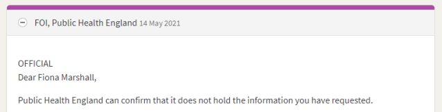 Public Health England have so far refused to publish the number of deaths within 28 days of a having a Covid-19 vaccine in England, claiming they do not hold the data despite their counterparts in Scotland being able to provide it.