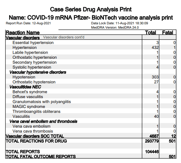 As of the 11th August there have been 293,779 adverse reactions and 501 deaths reported to the MHRA against the Pfizer mRNA injection.