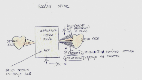 Ako "spike" proteini blokiraju angiotenzinom posredovan rad endotela izlaznog venskog plućnog optoka ili, biti ću hrabar, vaše "drugo" srce, kucajuće srce raditi će pod velikim opterećenjem! Samo će morati protiskati mikrougruške kroz desetke, možda i stotine kilometara (?) kapilara pluća (iz ovog razloga nastaju miokarditisi kod cijepljenih, čak i kod mladih, koji su INAČE RIJETKI).
