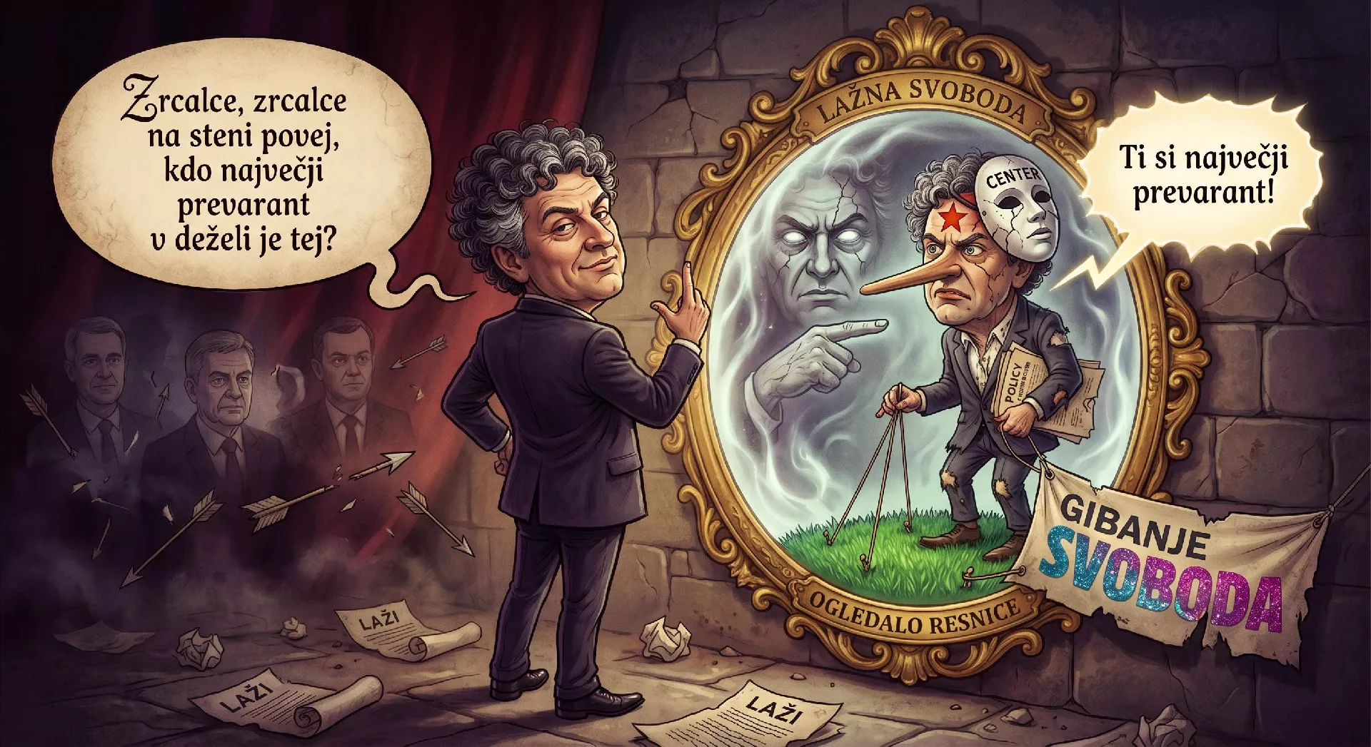 Ogledalo mu reče: "Ti si največji prevarant ter stranka lažna svoboda."