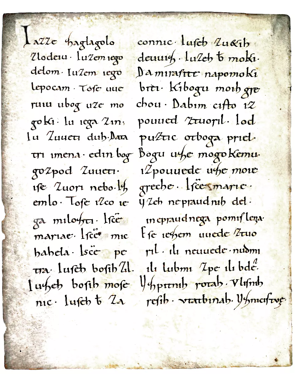 Predstavitev Brižinskih rokopisov najdete na angleških spletnih straneh Wikipedije, pa tudi kvalitetno fotografijo prve strani http://en.wikipedia.org/wiki/Freising_manuscripts