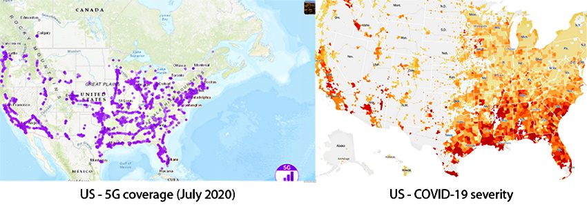 Here are some maps that I compiled (not from the paper quoted above) showing, visually, the Covid-5G association.