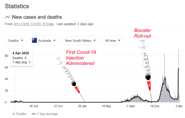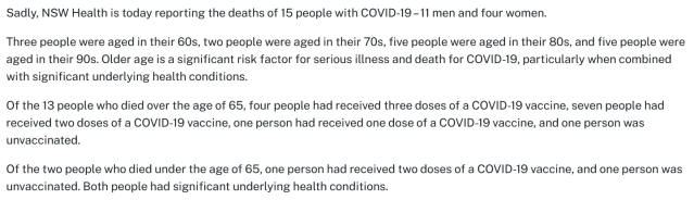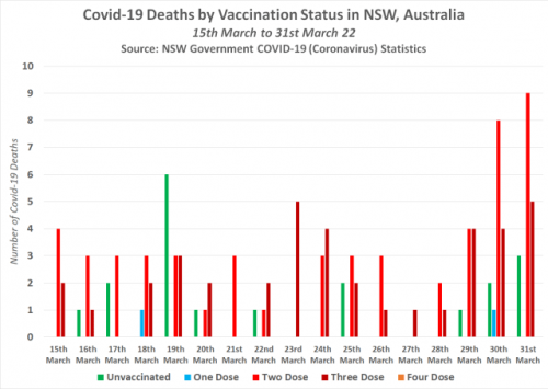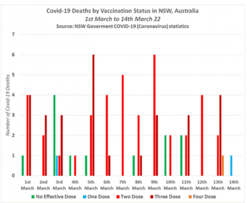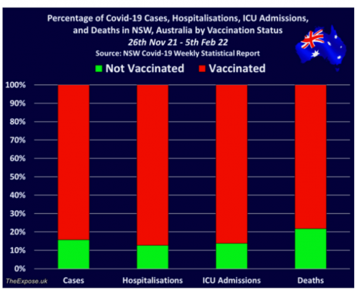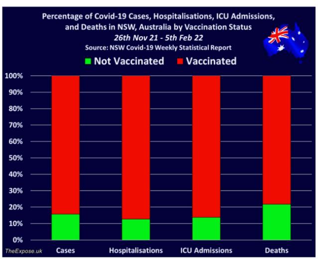 Medtem uradni podatki vlade Novega Južnega Walesa kažejo, da je v celotnem marcu 2022 cepljena populacija predstavljala več kot 4 od vsakih 5 smrti zaradi Covid-19.