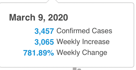 Screenshot of WHO graph Interactive WHO graphIn Germany on 9 March 2020, there were 2,948 “confirmed cases” out of a population of 83.2 million people.