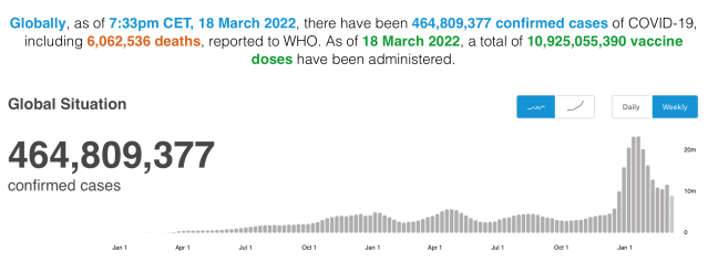 - 12 March 2022, 452,201,564 cumulative cases