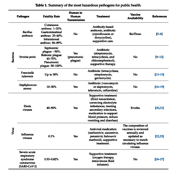 Screenshot / NIH Summary of the most hazardous pathogens for public health.