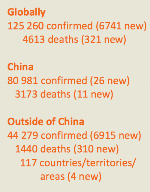 (The number of deaths outside China mentioned in Tedros’s press conference was 4291).