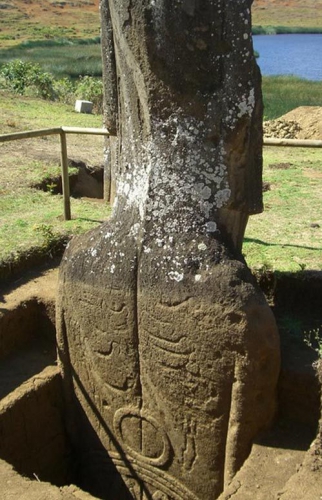 Nove slike izkopavanja iz leta 2012 ikoničnih kipov z Velikonočnih otokov kažejo na fascinantne detajle izkopanih telesa značilnih kamnitih humanoidov . Arheologi so ob izkopavanju presenečeni odkrili starodavne okraske simbolov po telesih gigantov