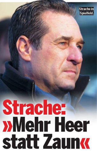 Razobešeni plakati po Avstriji: Več vojske namesto ograje; predsednik svobodnjaške stranke Strache.