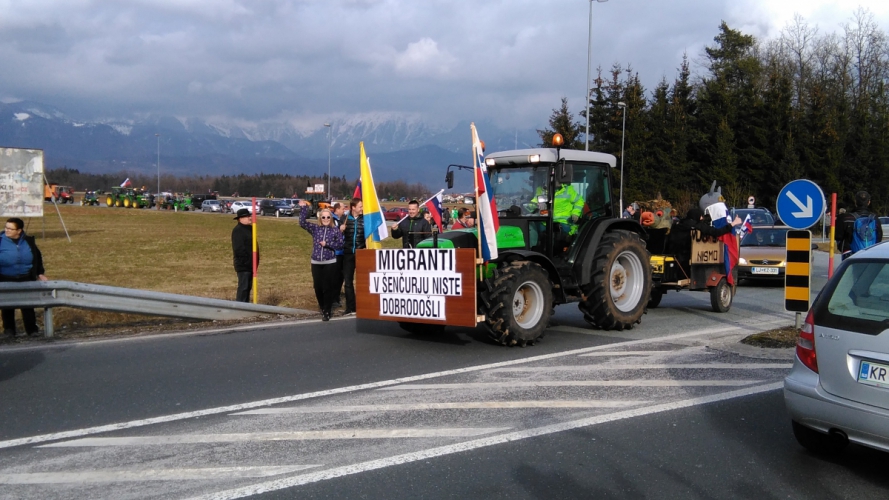 Pred poslopjem nekdanjega Baumaxa v Šenčurju je potekal protestni shod proti migrantskemu centru. Na prizorišču se je zbralo okoli 3.000 ljudi, bližnjo cesto so zasedli traktorji, udeleženci pa so se odpravili na krajši pohod po parkirišču.