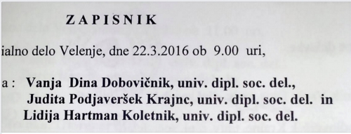 6. Na dan 22.3. so na skupnem sestanku zapisali zloglasni zapisnik (na sliki zgoraj izsek). Že takoj, ko sta sta starša prihajala v sejno sobo, je socialna delavka začela vpiti nanju tako na glas, da jo je dedek moral opomniti: “ Gospa, umirite se!” Ko so jima prvič in v zelo grobi, nasilni komunikaciji povedali, da nista primerna rejnika in da iščejo drugo rejniško družino, je bila odločitev, da se jima otroka vzame že napisana in je ta sestanek z njima bil samo prazna farsa! To so namreč sklenili že dan pred tem skupnim sestankom, 21.3., torej so njiju povabili, ko je bilo že črno na belem, da jima otroka vzamejo in premestijo v eno od rejniških družin, le da jima tega sploh niso povedali, ampak so ju s prisilo vodili do podpisa.