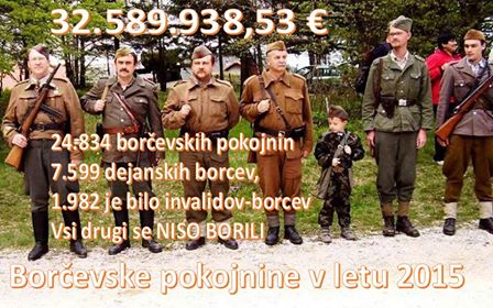 "Po podatkih ZPIZ je bilo letos marca izplačanih 24.834 borčevskih pokojnin, pri čemer je bilo 7.599 dejanskih borcev, 1.982 je bilo invalidov-borcev, medtem ko je bila večina borčevskih pokojnin (15.253) izplačana družinam borcev, katerih člani se dejansko sploh niso borili.
