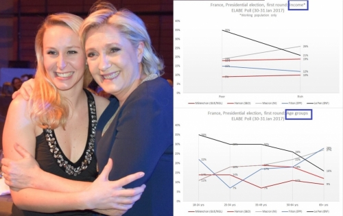 Po aferi, ki je spodnesla podporo kandidatu Republikancev Fillonu je postal najresnejši tekmec Marine Le Pen nekdanji socialistični minister Emmanuel Macron. Medtem, ko je bil Fillon presenetljivo človek, ki je podobno kot Marine zagovarjal politiko sodelovanja z Rusijo to ne velja za Macrona. Macron na francoski politični sceni gotovo predstavlja najbolj radikalno liberalno in globalistično usmerjenega kandidata, je navdušenec evropske federalizacije in podpornik nemške politike Angele Merkel, na konferencu v Lyonu pa je nastopal na odru, odetem v barve evropske zastave. Če nasprotniki Rusije trdijo, da sta Le Pen-ova in Filllon »proruska« kandidata, pa se o Macronu širijo govorice, da gre za »kandidata Rotschildov« - globalno pomembne bankirske lobistične družine, ki ima v lasti milijarde premoženja in je lastnica več centralnih bank. Preden se je skokovito povzpel po lestvici Socialistične stranke, je Macron naredil kariero investicijskega bankirja pod znamko Rotschild & Co, Republikanec Nicolas Dhuicq pa meni, da je bil Macron skozi svojo poklicno kariero »ves čas agent velikega Ameriškega bančnega sistema«. »Vedno je bil predan ideji globalizacije in globalnega prostega trga, kot socialistični minister za gospodarstvo pa je bil posrednik pri prodaji nekaterih velikih francoskih podjetij ameriškim korporacijam. Močno je podpiral relokacijo naftne skupine Technip ameriškemu tekmecu FMC, kar se je izkazalo za transfer uspešnega francoskega podjetja pod ameriški nadzor. Preden se je podal v predsedniško bitko kot neodvisni kandidat ni kandidiral, niti bil izvoljen na nobeno drugo politično funkcijo«, zato Nicolas Dhuicq meni, da gre očitno predvsem za njegove osebne interese. »Kontroverzni detajli njegovega privatnega življenja bodo kmalu obelodanjeni, Julian Assagne pa je omenil, da naj bi bil Macron udeležen tudi na famozni politični korespondenci z bivšo predsedniško kandidatko ZDA Hillary Clinton«. Medtem, ko mediji Marine Le Pen kljub neskladju z njenimi političnimi pozicijami označujejo za »skrajno desničarko«, pa govorijo o Macronu kot o »sredinskem« kandidatu. »Je medijski ljubljenec, francoski mediji pa so v lasti nekaj ljudi, ki jih vsi poznamo« nadaljuje Dhuicq »podpira ga tudi znani podjetnik Pierre Berge, ki je homoseksualec ter pomembno gonilo francoskega gay-lobija". Skratka, če se v liberalnih medijih o Marine Le Pen govori kot o »francoski obliki Donalda Trumpa«, pa lahko za Macrona rečemo, da gre za »francosko Hillary Clinton«.