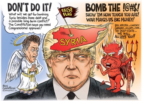 Zanimivo so v teh dneh prav tiste osebe, ki jih masovni mediji razglašajo za največje »rasiste«, »fašiste«, »ksenofobe« in »skrajne desničarje« praktično edini močni in skeptični glasovi proti vojni in vojaški intervenciji v Sirijo. Masovni mediji, liberalci in globalisti, pa so postali naenkrat veliki navdušenci nad Trumpom. V medijih, kakršen je CNN pa se še isti dan vrstijo bizarni naslovi, kot so »Bomo sedaj Trumpa prepričali tudi glede sprejemanja beguncev?«.