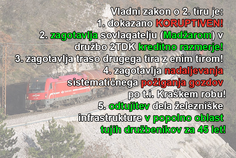Če bo obveljal cerarjev zakon in 20 let stara zidarjeva trasa drugega tira, bo vsak Slovenec preplačal drugi tir v višini vsaj 1.000 eurov.