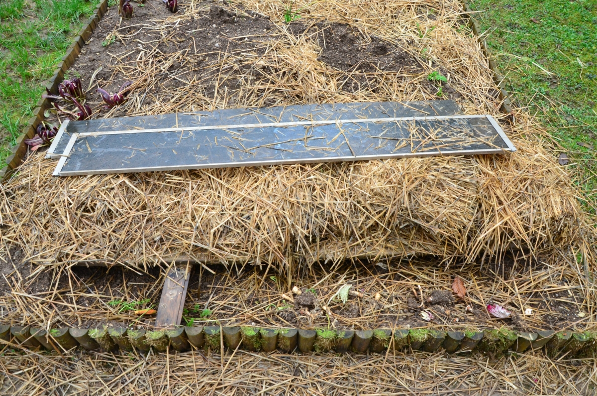 Letos prvič sem naredil zasipnico in vanjo jeseni prenesel radič. Dveh vrst sem ga imel: Pallo Roso in Castelfranca. Preprosto sem skopal kake pol metra globok jarek, zemljo vrgel na kup, v njem naredil razore in vanje tesno enega zraven drugega prenesel radiče s koreninami in zemljo. Potem sem korenine malo zasul, pokril z desko in na to nametal kakih 10 cm pšenične slame za izolacijo. To je lepo zdržalo oni mraz – mislim, da decembra, tole ne-zimo pa tako in tako. Do sedaj smo imeli radič iz zasipnice. V zasipnici sem pustil tudi malo korenja, ki se mi ga ni ljubilo pakirati v skrinjo.
