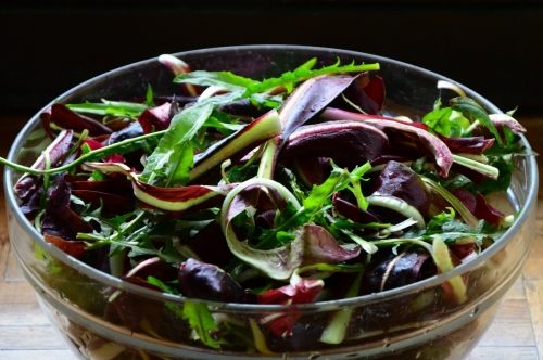 Na njivi imam pa tudi nekaj Treviškega rdečega (tudi radič), kar nepokritega, ker menda zdrži nizke temperature (in res jih je do sedaj). Okusne liste z zunanje strani lepo režem in upam, da bo spomladi pognal v glavo. Imam tudi eno malo vrstico Katalonskega radiča (izgleda kot regrat), ki je kar trajnica. Lepo ga porežeš in spet požene. Je grenak, verjetno zato zdrav, a kar malo “pretirava” z grenkobo.