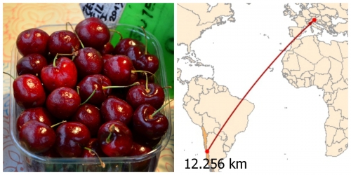 Ampak, ste se že kdaj vprašali od kje vse pride to sadje sredi zime v Ljubljano? Jaz sem malo raziskal po sadja na Ljubljanski tržnici. Ne vsega seveda. Dva rekorderja: jabolka 6,7 km iz Zadvora (7 minut z avtom) do Ljubljane in češnje in borovnice iz Čila 12.256 km (13 ur in 50 min z letalom).