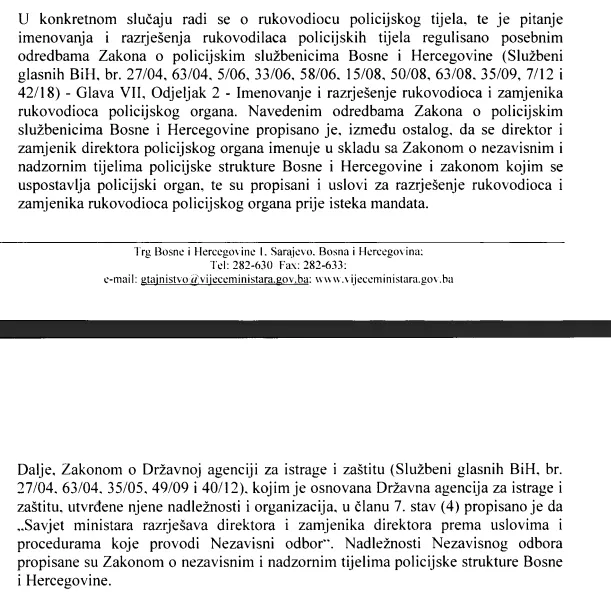 Umjesto toga, Vijeće ministara BiH ga je u oktobru 2024. godine razriješilo na vlastiti zahtjev iako je on formalno-pravno bjegunac od bh. pravosuđa. Tako će ostati zabilježeno da je BiH na poziciji zamjenika direktora SIPA-e skoro četiri mjeseca držala bjegunca, a na poziciji direktora ostavila rušioca ustavnog poretka.