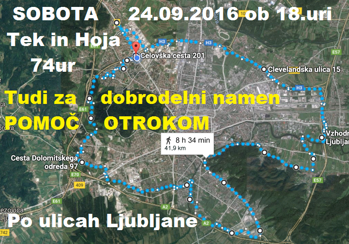 Objavljam traso 74-urnega TEKa in HOJe SOBOTA 24.9.2016 Start ob 18.uri.