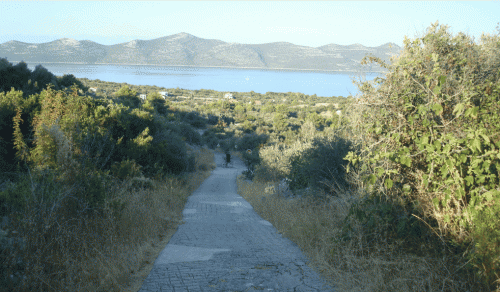 Tek po brezpotjih, kolovozih, kozjih stezicah, iz ene strani Iža na drugo stran… na obeh straneh pa slano nebeško sinje morje. Praktično ne srečaš nikogar, le kakšen radoveden osliček iz oljčnega nasada te pozdravi. Tudi izgubiti se ne moreš. Če pa se vam zazdi, da ne veste kje ste, odtecite pravokotno v hrib na vrh otoka. Vaša trenutna lokacija vam bo hitro jasna. Rešen problem.