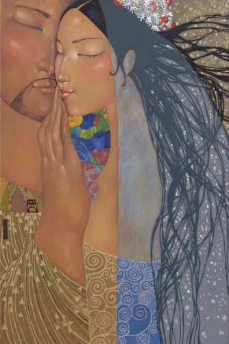 Z očmi božam ranljivi tvoj izraz, ko nežnost še me k tebi vleče... se raje umaknem. Bojim se te zmotiti, da začutil ne bi misli te... dotika.