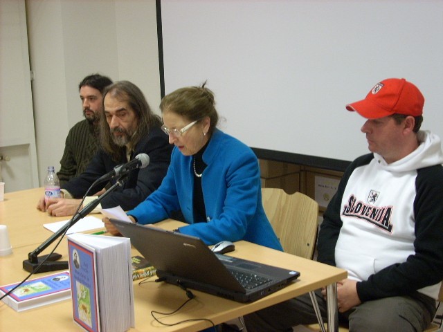 Na sliki zgoraj uvod v predstavitev knjige Jurija Venelina Starodavni in današnji Slovenci, ki se je odvila v Loparju v Istri l. 2011 in nato še v Narodnem domu v Trstu. Na 1. sliki Andrej Šiško, dr. Duša Krnel Umek in jaz, na 2. sliki pa od desne poleg Šiška in dr. Krnel še Peter Amalietti in Blaž Babič.