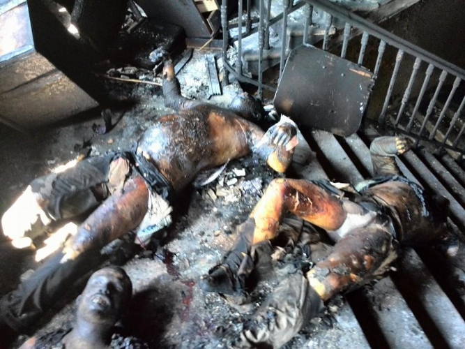 Oblast iz Kijeva je dopustila pokol nedolžnih civilistov v Odessi. Fotografije so več kot nazorne. Gre se za mlade, neoborožene protestnike, ki so jih zaprli v stavbo in zažgali. Kdor se je rešil iz ognja so ga zverinsko potolkli.