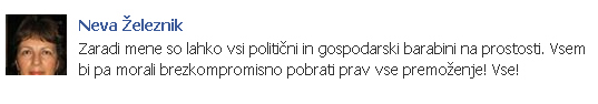 Zaradi mene so lahko vsi politični in gospodarski barabini na prostosti. Vsem bi pa morali brezkompromisno pobrati prav vse premoženje! Vse!