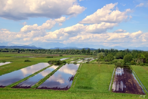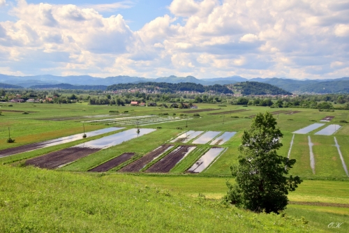 Pogled se ustavi na poplavljenih njivah. Bodo morali Barjanci začeti gojiti riž in ne koruze. Saj njive spominjajo na riževa polja, ali pa bazene.