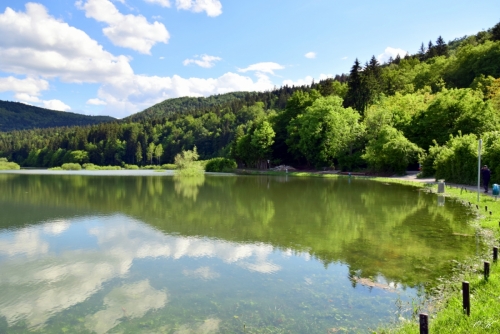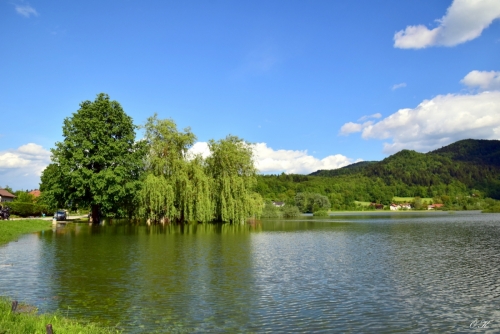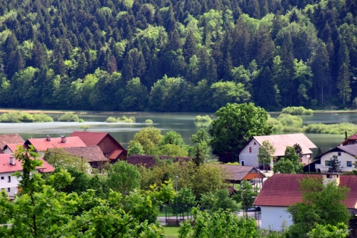 Pogled proti vasi Jezero pa razkrije, kako je jezero naraslo po zadnjem deževju.