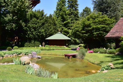 Še ribnik v "japonskem vrtu" je nekam klaveren.
