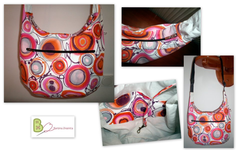 M_BaG ... nastavljiva naramnica, zapenjanje na zadrgo ... zunanji žep na zadrgo, trakec za ključe, en notranji žep na zadrgo, 2 navadna notranja žepka Velikost: 40x30 cm
