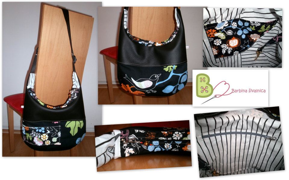 M_BaG ... kombinacija skaja in vzorčastega bombaža ... nastavljiva naramnica ... v notranjosti dva žepka na eni strani in žep na zadrgo, trakec s karabinom Velikost: 40x30 cm