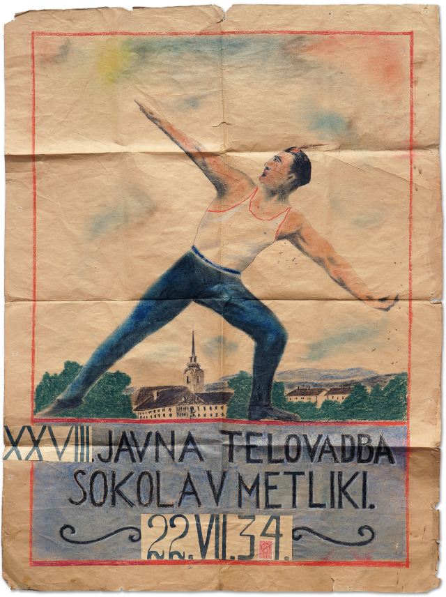 Plakat Metliškega Sokola je z barvno kredo ustvaril železničarski uradnik Jako Barle iz Metlike. Uporabljen je bil večkrat, nazadnje leta 1934, taksa za obešanje plakata pa je takrat znašala 1 dinar.