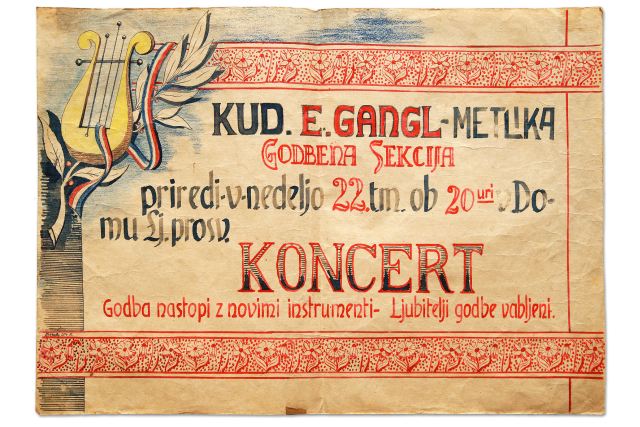 Metliški godbeniki so bili po drugi svetovni vojni vključeni v Kulturno umetniško društvo Engelbert Gangl Metlika. Ob nakupu novih glasbil so priredili koncert, plakat, ki vabi nanj, je izdelal nekdanji kapelnik Ivan Drobnič 20. aprila 1951. Koncert so izvedli dva dni za tem.
