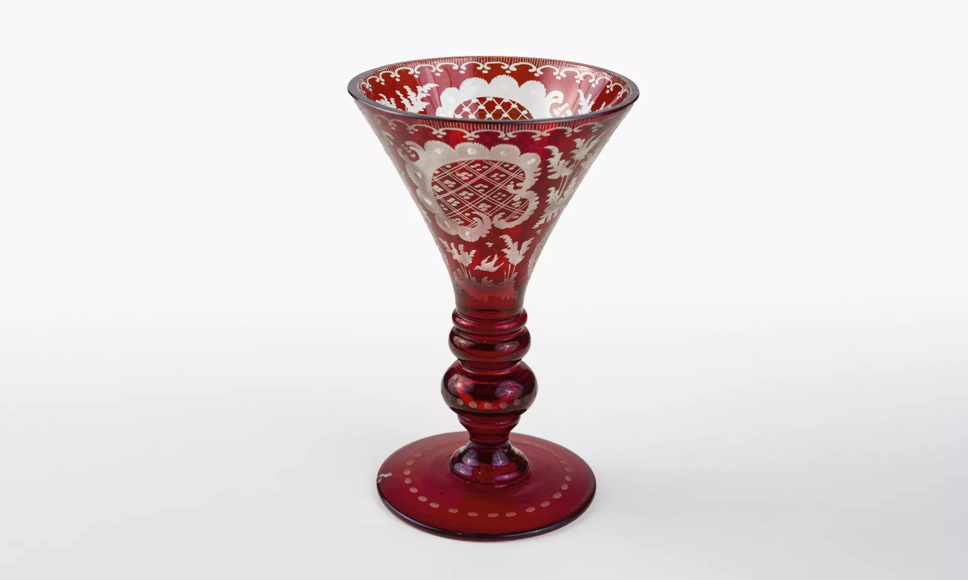 gravirano rdeče steklo; v: 13 cm