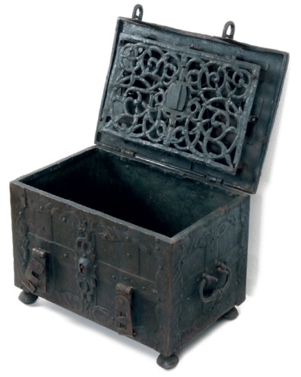 Železna skrinja ali blagajna, je bila last zadnjega metliškega graščaka viteza Josipa Savinška. Namenjena je bila shranjevanju pomembnejših dokumentov, dragocenosti in tudi denarja. Leta 1899, ko je vitez Josip Savinšek prodal grad s posestvom Ljudski posojilnici v Ljubljani, je pred odhodom razprodajal tudi grajski inventar. Vpisano skrinjo je kupil Franc Kremesec, kovač v Metliki, in jo čez dobrega pol stoletja, 7. novembra 1950, poklonil Muzejskemu društvu v Metliki za nastajajoči Belokranjski muzej.