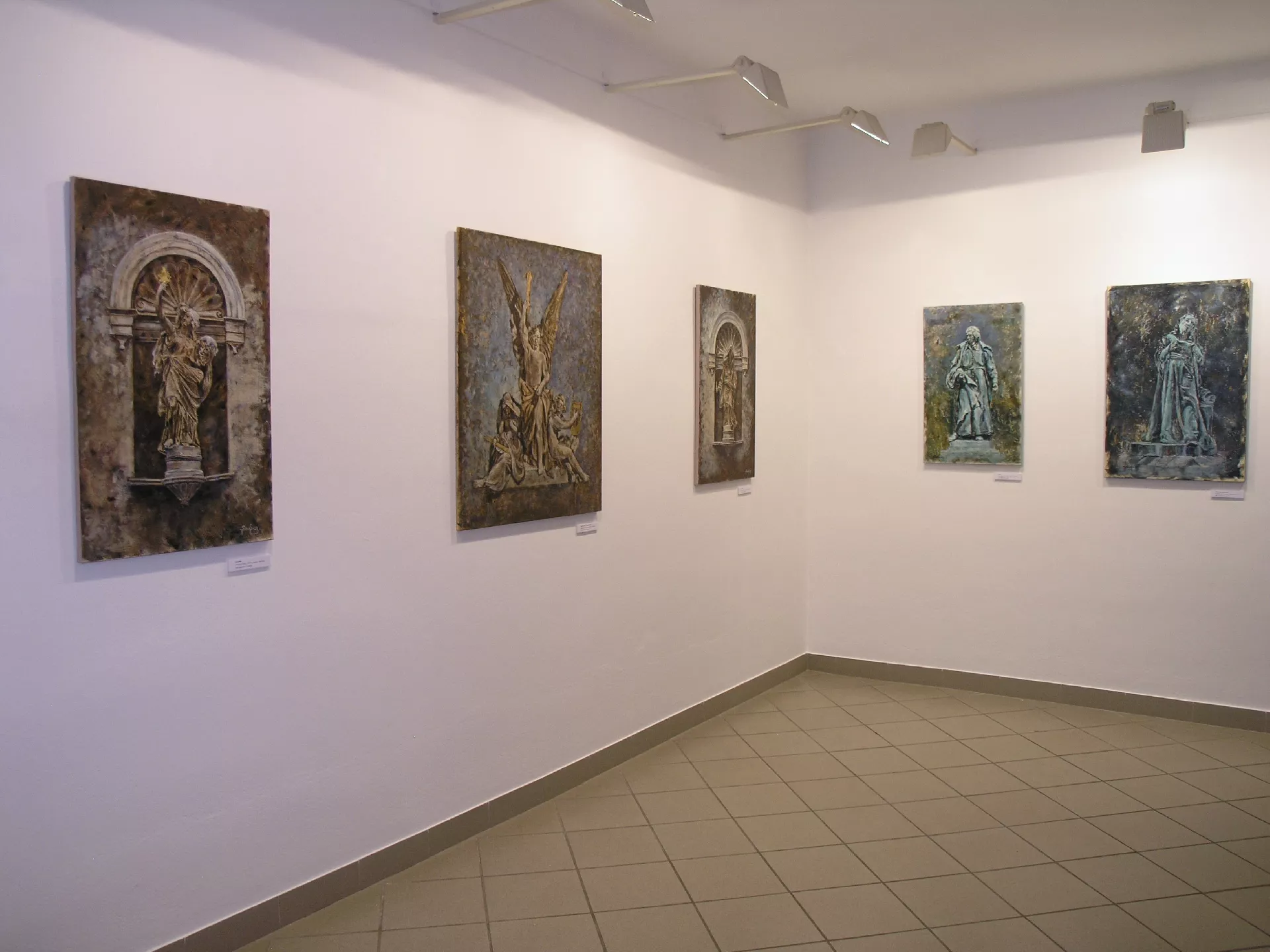 Navdušilo nas je avtoričino občudovanje del Metličana, kiparja, Alojza Gangla. Spoznala jih je na sprehodu po Ljubljani in jih ob devetdeset letnici kiparjeve smrti prevedla v svoj likovni svet. Cikel petih oljnih slik, nastalih po Ganglovih najznamenitejših ljubljanskih skulpturah, je za to razstavo dopolnila z interpretacijo kipa Kristusa, osamelega popotnika, ki stoji na metliškem pokopališču.