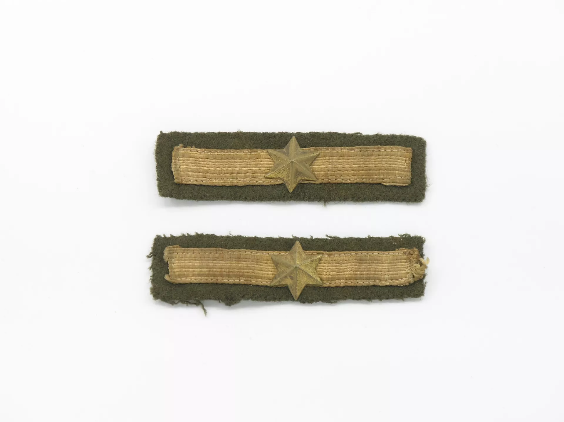 Našitki so narejeni iz angleškega vojaškega blaga, zlatega traku in medeninastih zvezdic. Našitke je nosil Daro Flajšman iz Metlike, partizan Bračičeve brigade, ki je odšla v sklopu XIV. divizije januarja 1944 s Suhorja na Štajersko.