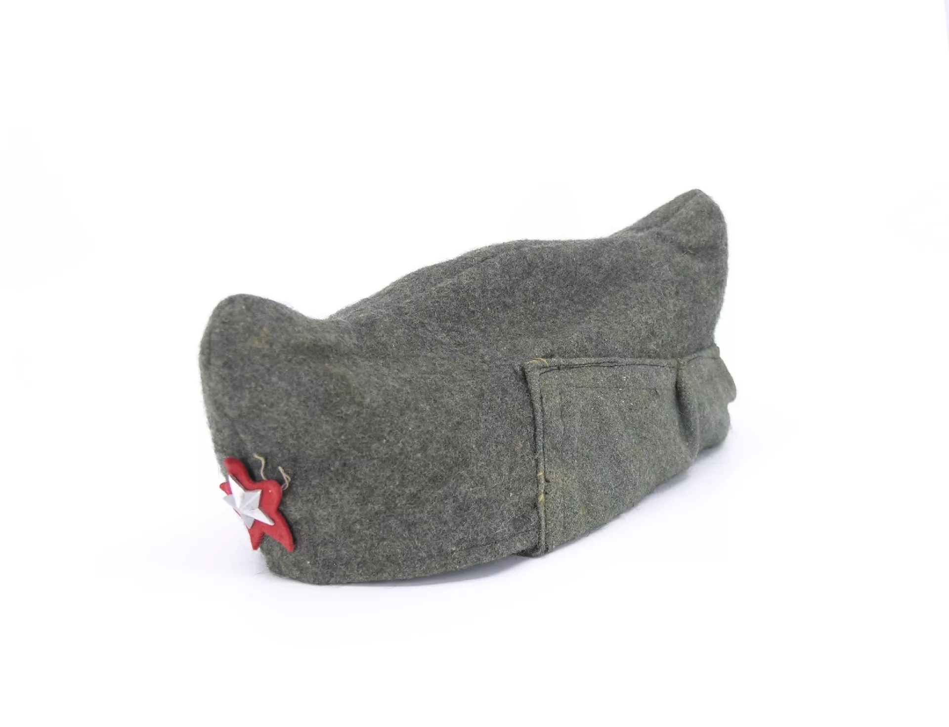 Kapa je narejena iz italijanskega vojaškega blaga, krojena v obliki Triglava in sešita s šivalnim strojem.