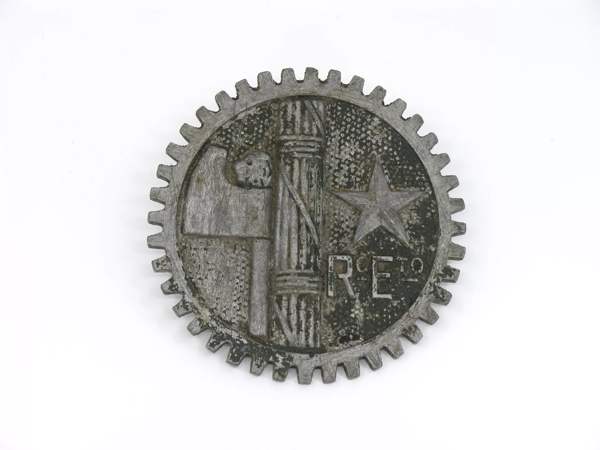 Oznaka s fašističnim grbom (liktorski snop s sekiro in levjo glavo), zvezdo in kratico, ki pomeni italijansko vojsko.