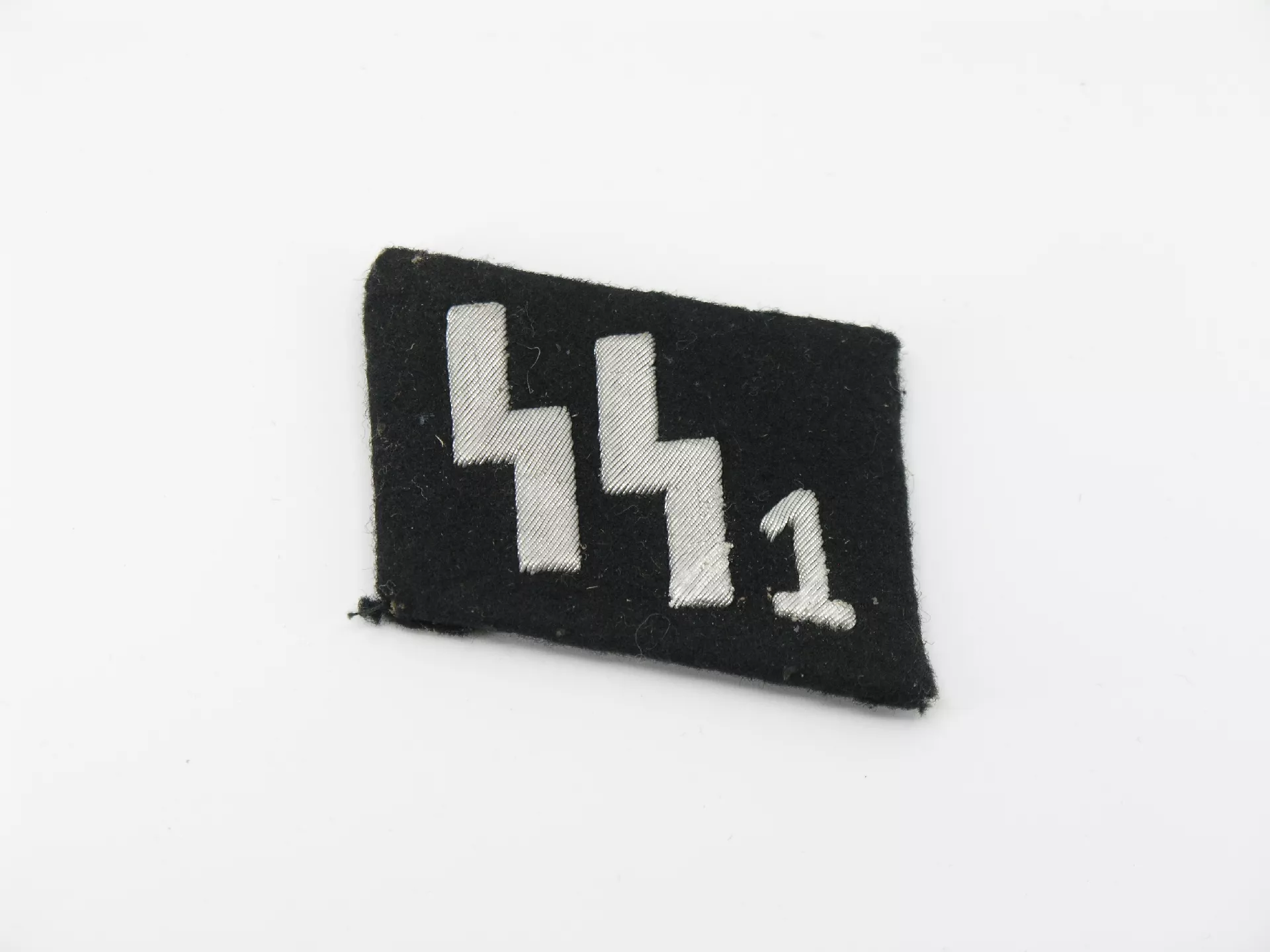 Našitek je narejen iz črnega tekstila in ima s srebrnkasto svilo izvezeno dvojno runo SS (Schutzstaffel).
