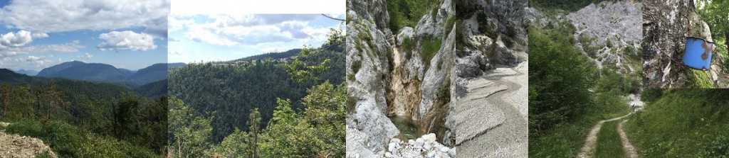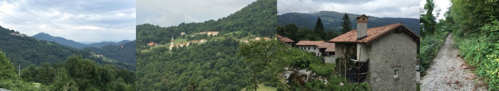 Hribovje od Čedada do slovenske meje z Matajurjem in Kolovratom je vsekakor zanimivo področje za kolesarjenje. Celotno področje je pokrito z majhnimi raztresenimi vasicami, ki jih povezujejo ozke, praviloma asfaltirane ceste. Je pa področje tudi zahtevno saj katerokoli pot uberete, boste v dveh, treh urah morali premagati vsaj tisoč metrov višinske razlike. Ena takih zanimivih krožnih poti se začne v Savogni (do tja se lahko pripeljete čez Livek in Čeplečišče na italijanski strani) od koder je strm vzpon do vasi Matajur (Montemaggioro). Na začetku vasi zavijete na ozko cesto takoj levo in ta vas vodi na isti nadomorski višini na drugo stran pogorja Matajur (na predzadnji sliki je v ozadju), ko se začne spuščati vse do naslednje vasi Jerebi. Tam pa lahko nadaljujete ves čas po ozkih poteh značilnih za to območje (zadnja slika) nad in med okoliškimi vasicami nazaj na izhodišče. Pri tem se predvsem sprašujem od česa so nekdaj ljudje živeli, saj ni ne kmetijstva, ne gozdarstva, samo vasice postavljene sredi goščave, kot kažeta prvi sliki.