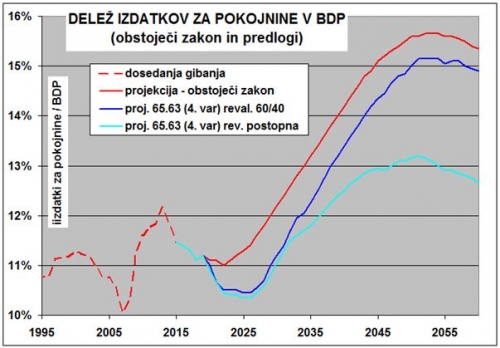 - po projekcijah naj bi se ta delež v naslednjem desetletju tudi po obstoječem zakonu zmanjševal, zaradi česar pretirano hitenje z uvedbo novih pogojev upokojevanja ni potrebno,